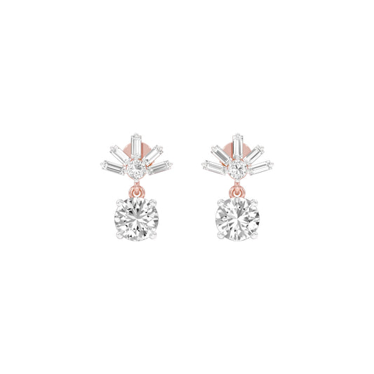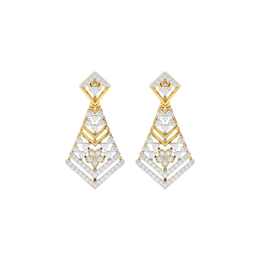 Radiant Blossom Diamond Earrings: Round-cut lab diamond earrings form a striking geometric drop, made for the woman who wears her confidence as beautifully as she wears her diamonds.