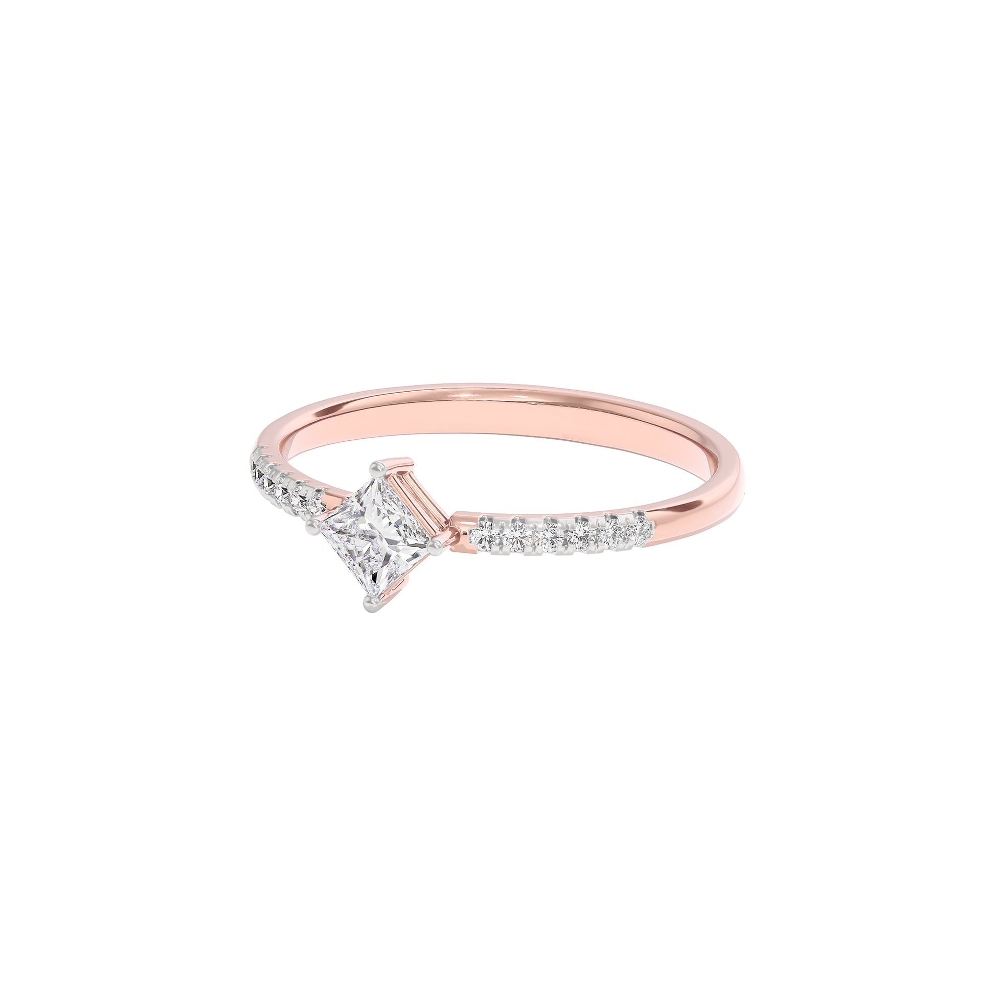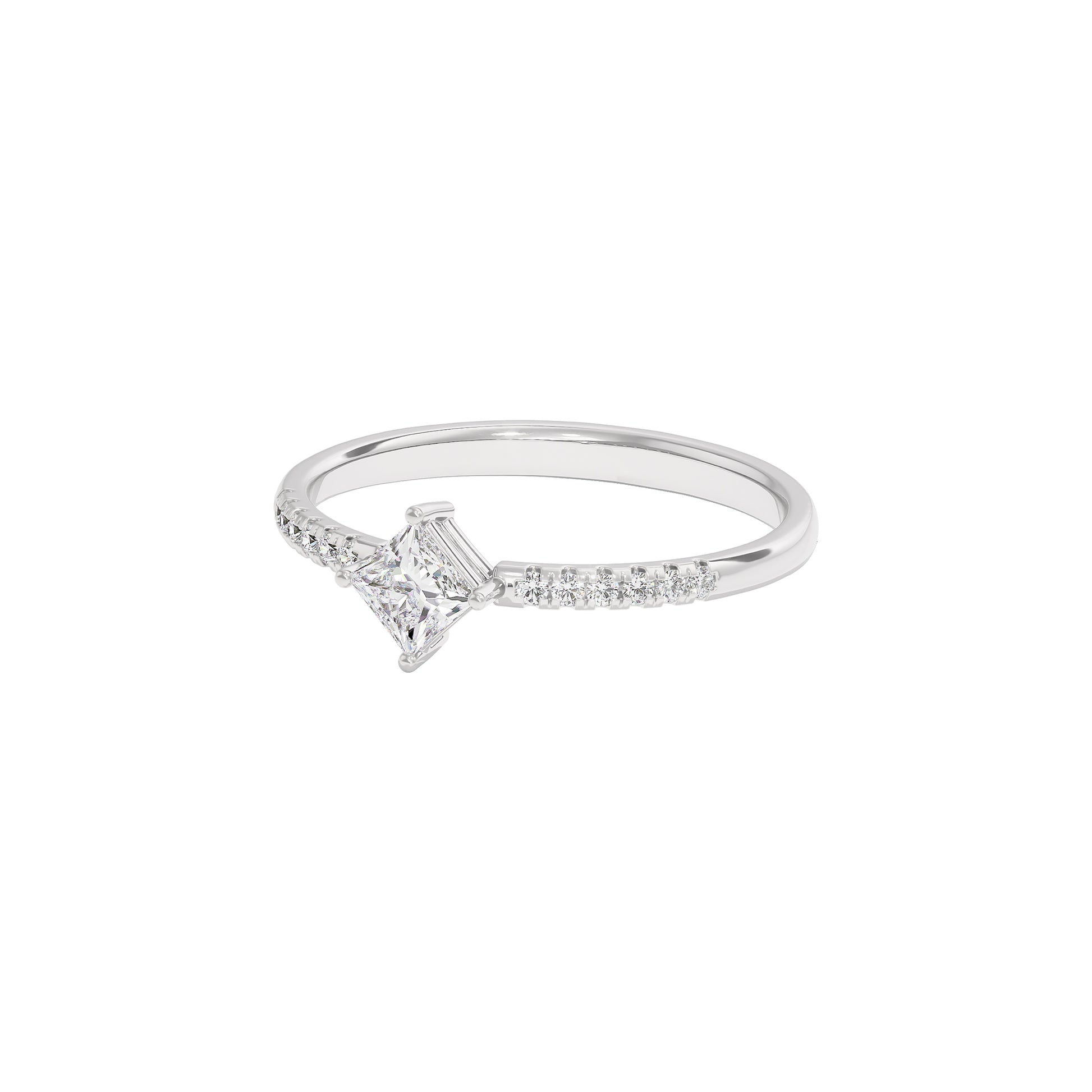Layered with a stream of diamonds, our majestic lab grown diamond ring with a soliatire piece, combines simplicity with a touch of glamour.