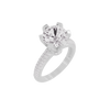 This beautiful lab grown diamond ring showcases a delicate arrangement of diamonds that form a sparkling blossom.