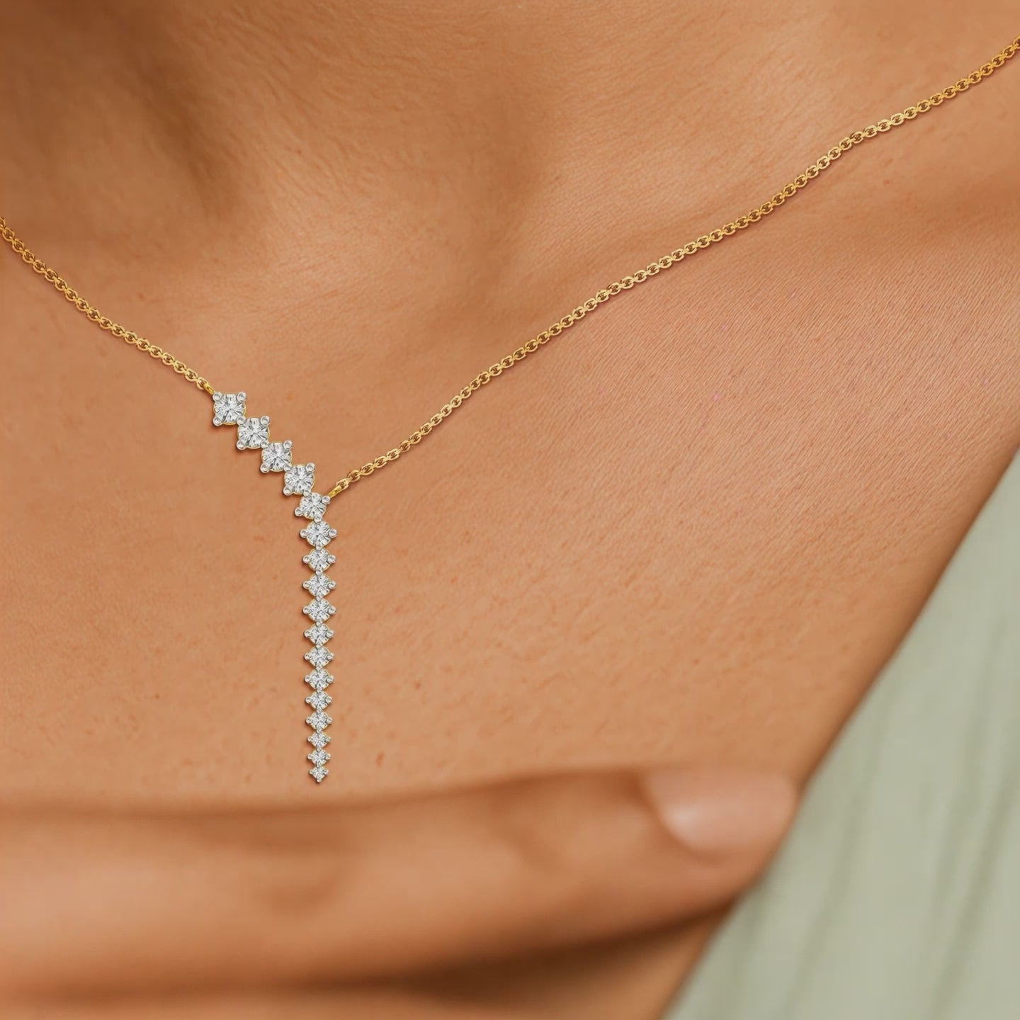 Luminous One Liner Y Diamond Chain Necklace